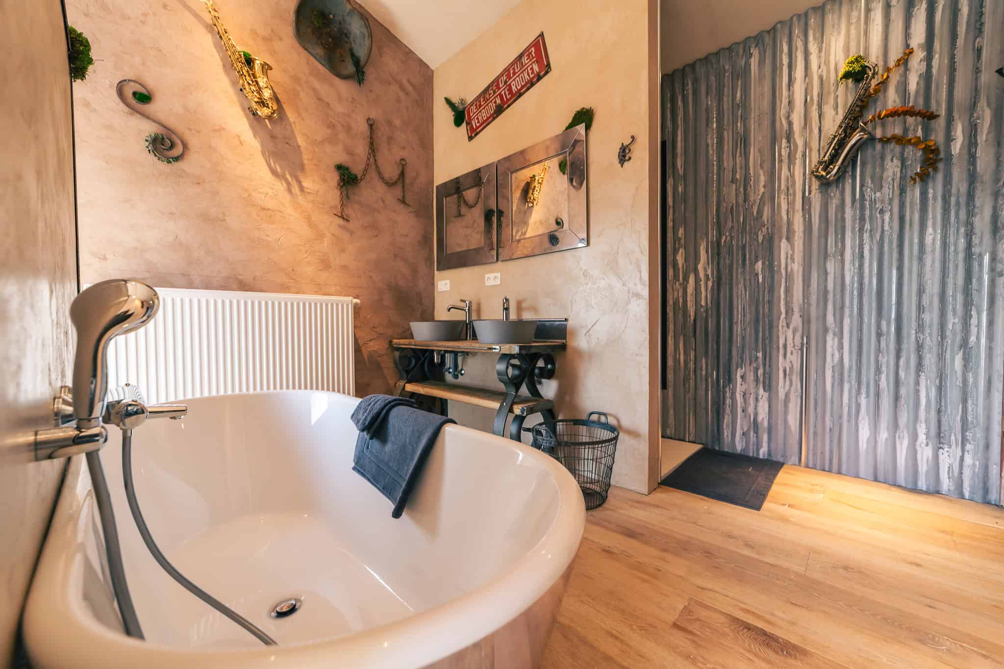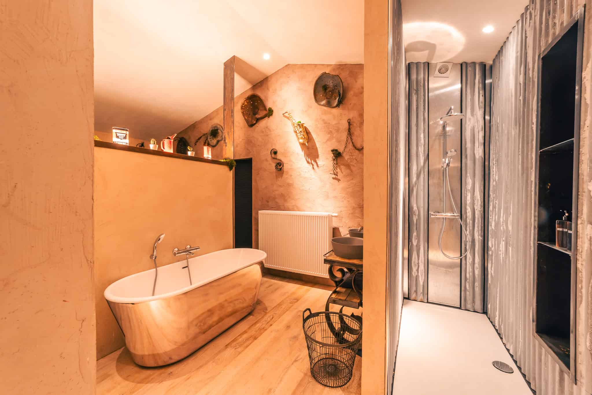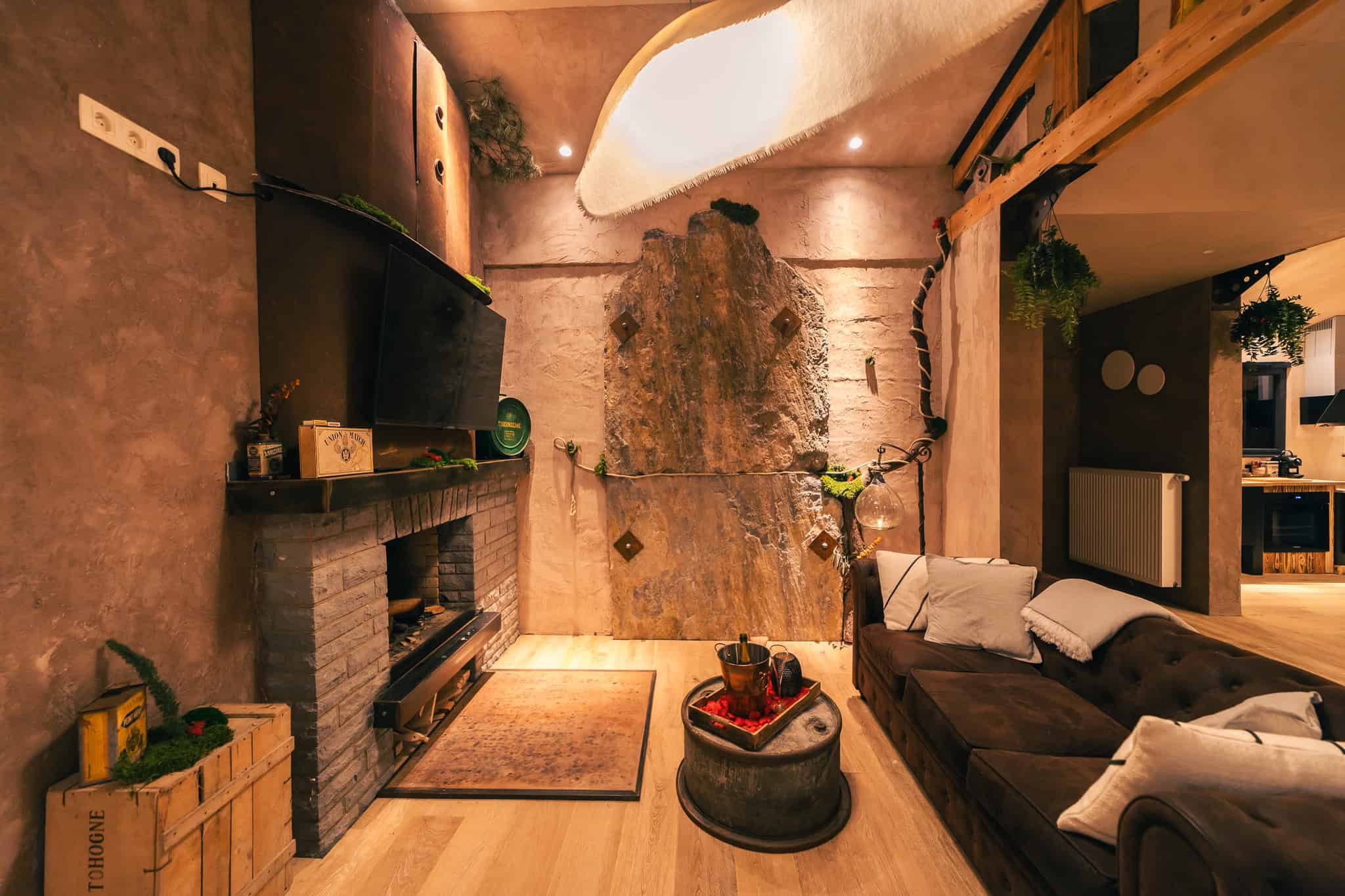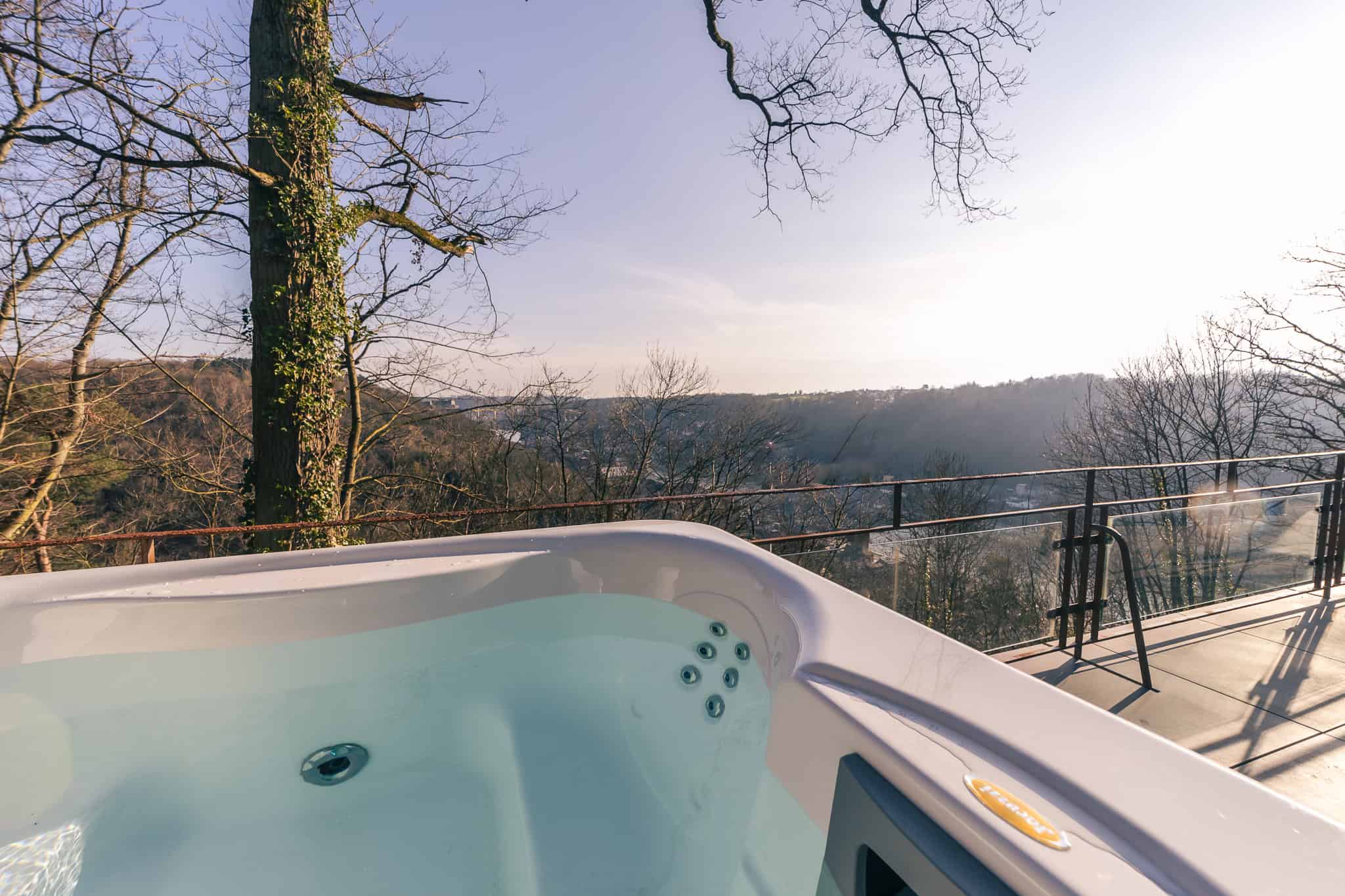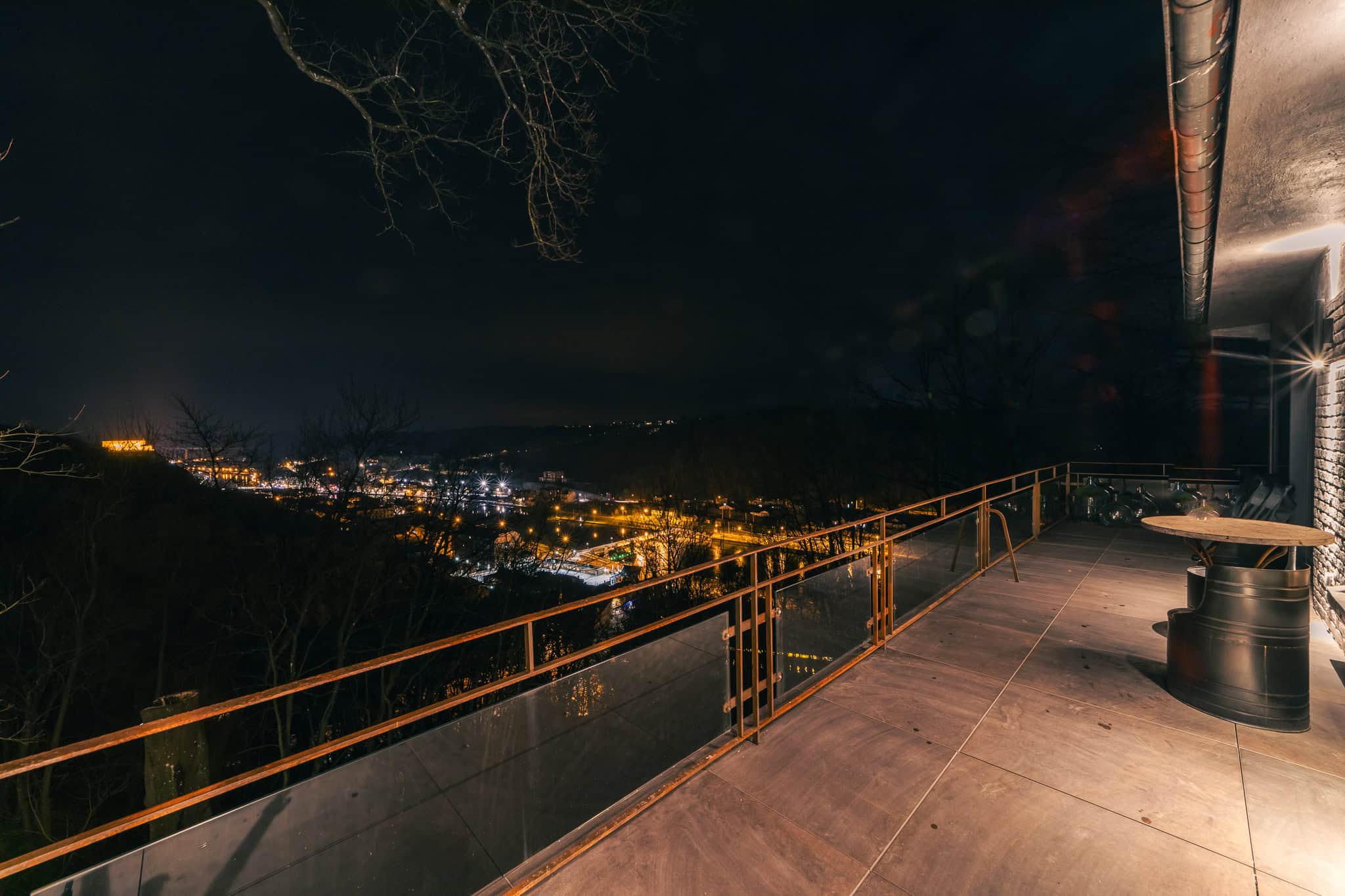 Après avoir monté la petite colline découvrez ce cottage rénové surplombant Dinant, isolé au cœur d’une réserve naturelle. Profitez de vues imprenables depuis les quatre grandes fenêtres de la terrasse. À gauche, une cuisine entièrement équipée alliant ancien et moderne. Un jardin intérieur ajoute une touche de verdure. À droite, un salon cosy avec un Chesterfield et une cheminée, et un clin d’œil au « Rocher Bayard » avec une pierre massive de 600 kg. La chambre offre une vue sur la ville et une salle de bain avec douche à l’italienne et baignoire. Sur la terrasse, un jacuzzi chaud vous attend, tandis qu’en bas, une salle de bien-être avec sauna infrarouge complète votre séjour relaxant.